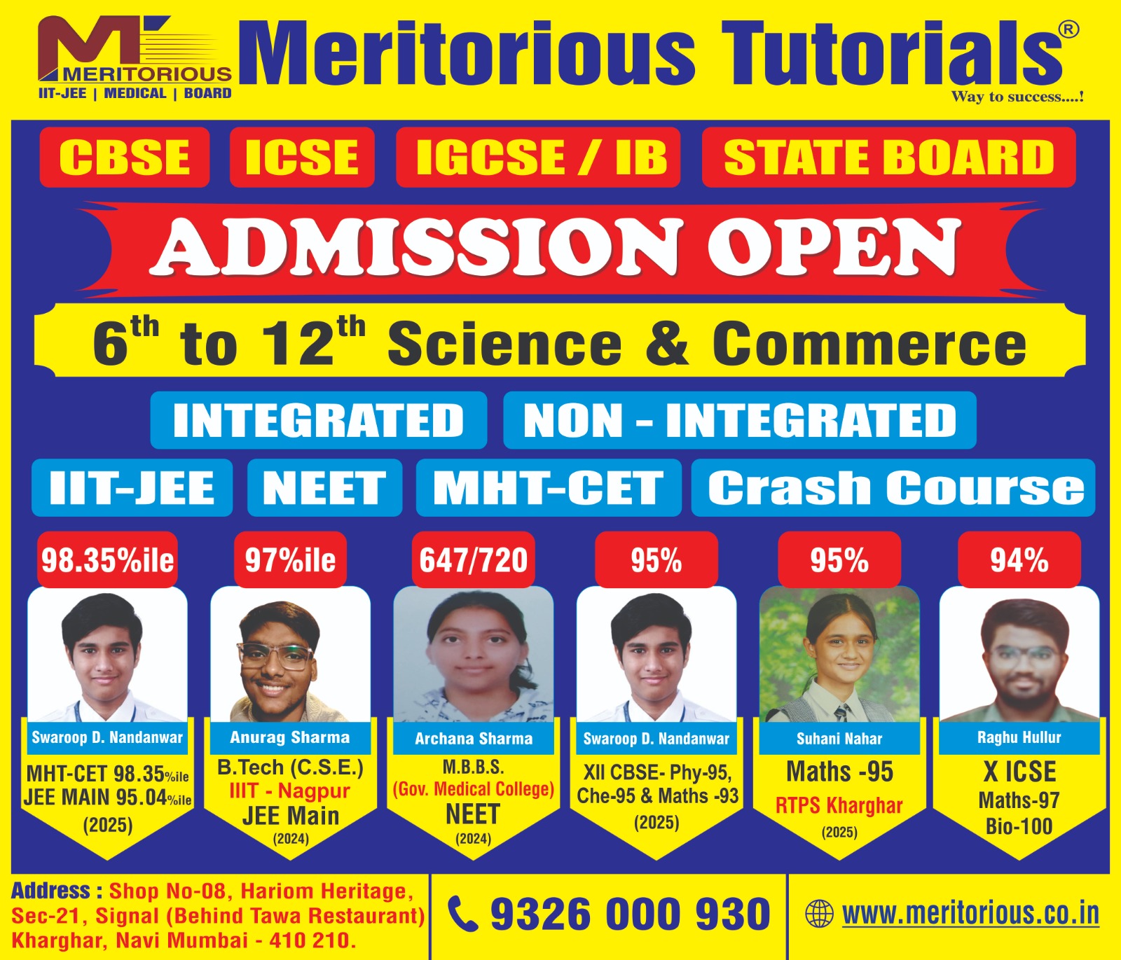 Welcome to Meritorious Tutorials – Your Path to Academic Success! Enroll Now for Board & Competitive Exam Coaching! **
